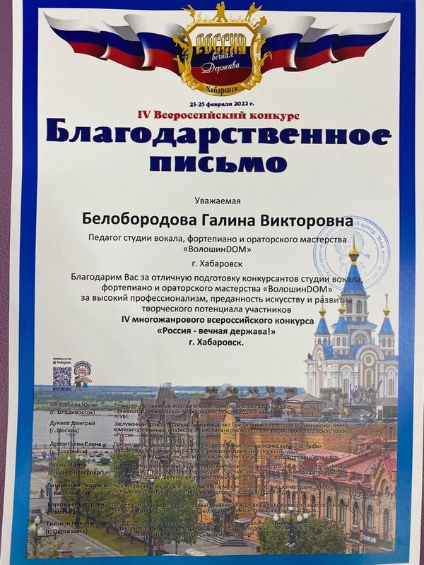Я очень довольна своим педагогом. Галина Викторовна Белобородова очень профессиональная, она полностью подходит моему уровню.