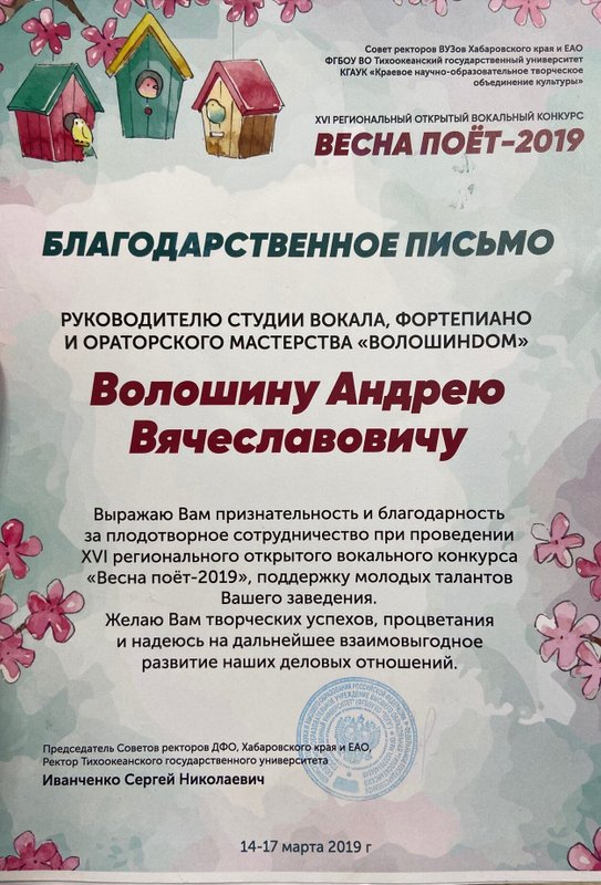 Один раз с ребёнком был в студии вокала и фортепиано "Волошин Dom", всё прошло отлично. Сотрудники нас хорошо встретили и организация самого занятия по вокалу педагогом была отличной, дочь довольна осталась.