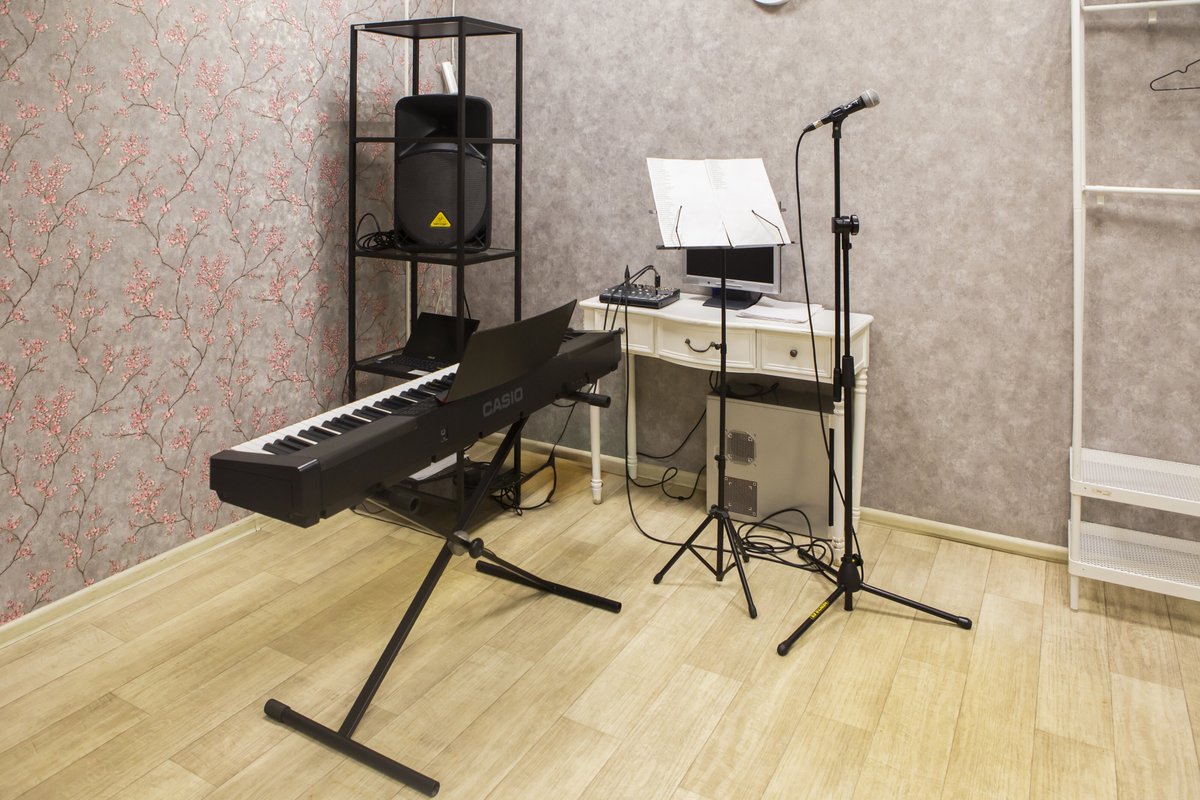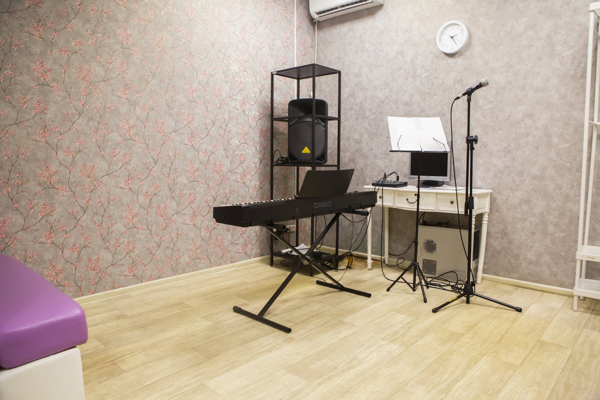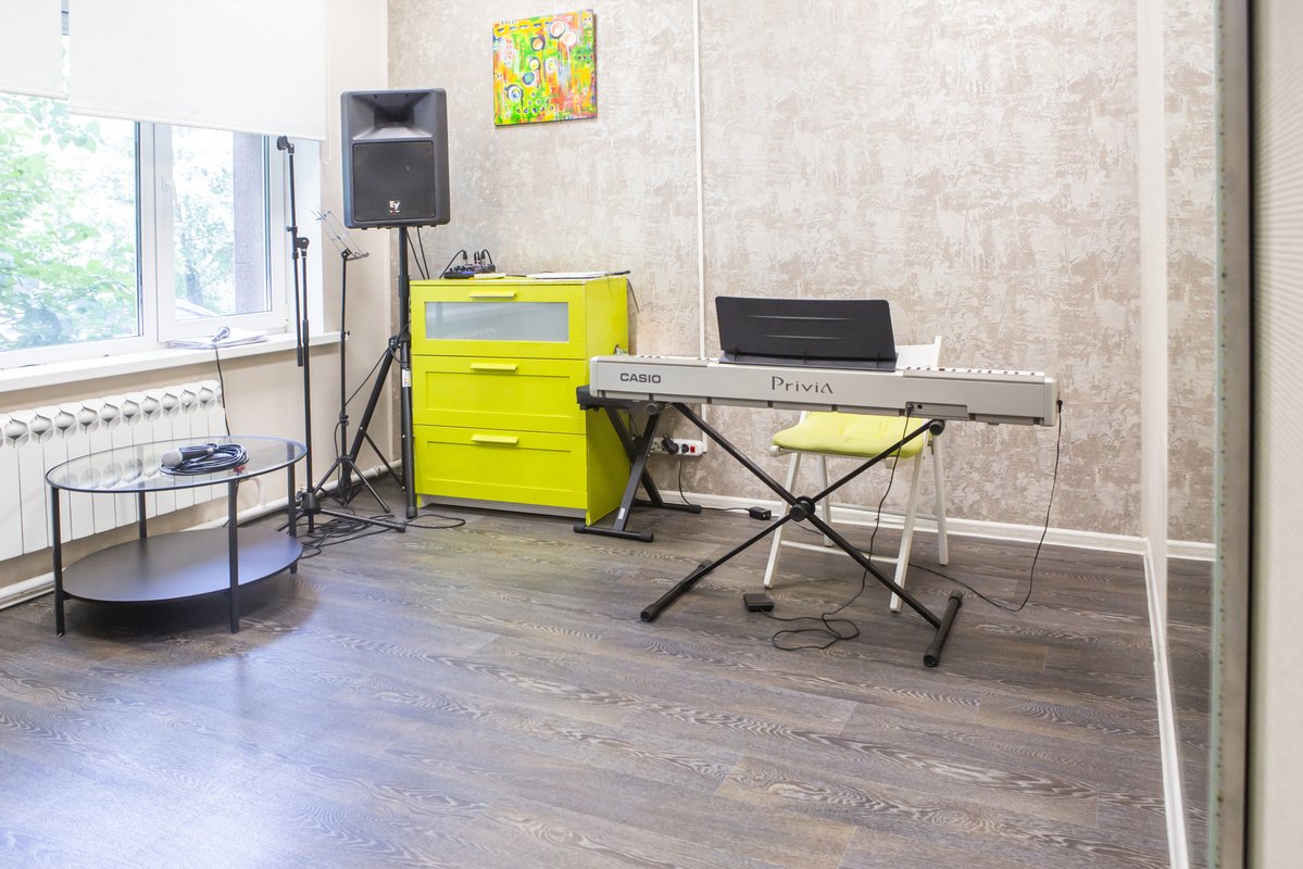 Пришла на вокал, мне это само по себе нравится. Студия оборудована хорошо. Есть синтезатор или фортепиано, не знаю как правильно называется, микрофон. На занятиях есть разминка голоса перед пением. Выбрала вокал как направление, потому что всегда хотела петь. А с какого-то момента у меня появилась боязнь петь.