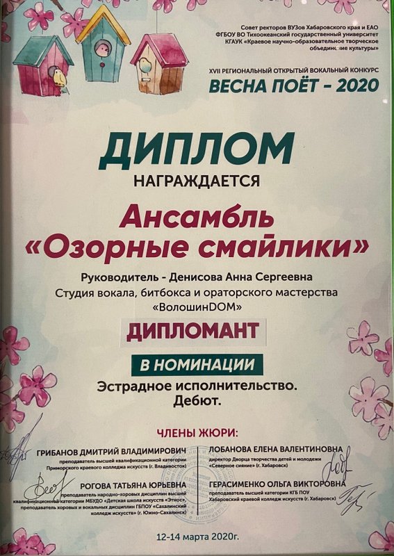 Занимается вокалом моя дочь у преподавателя Анны Сергеевны в ансамбле. Занимаемся уже четыре года и с Анной Сергеевной у «Карамелек» высокие результаты, занимают призовые места в конкурсах, уже молодцы! Ребенок посещает занятия один раз в неделю.